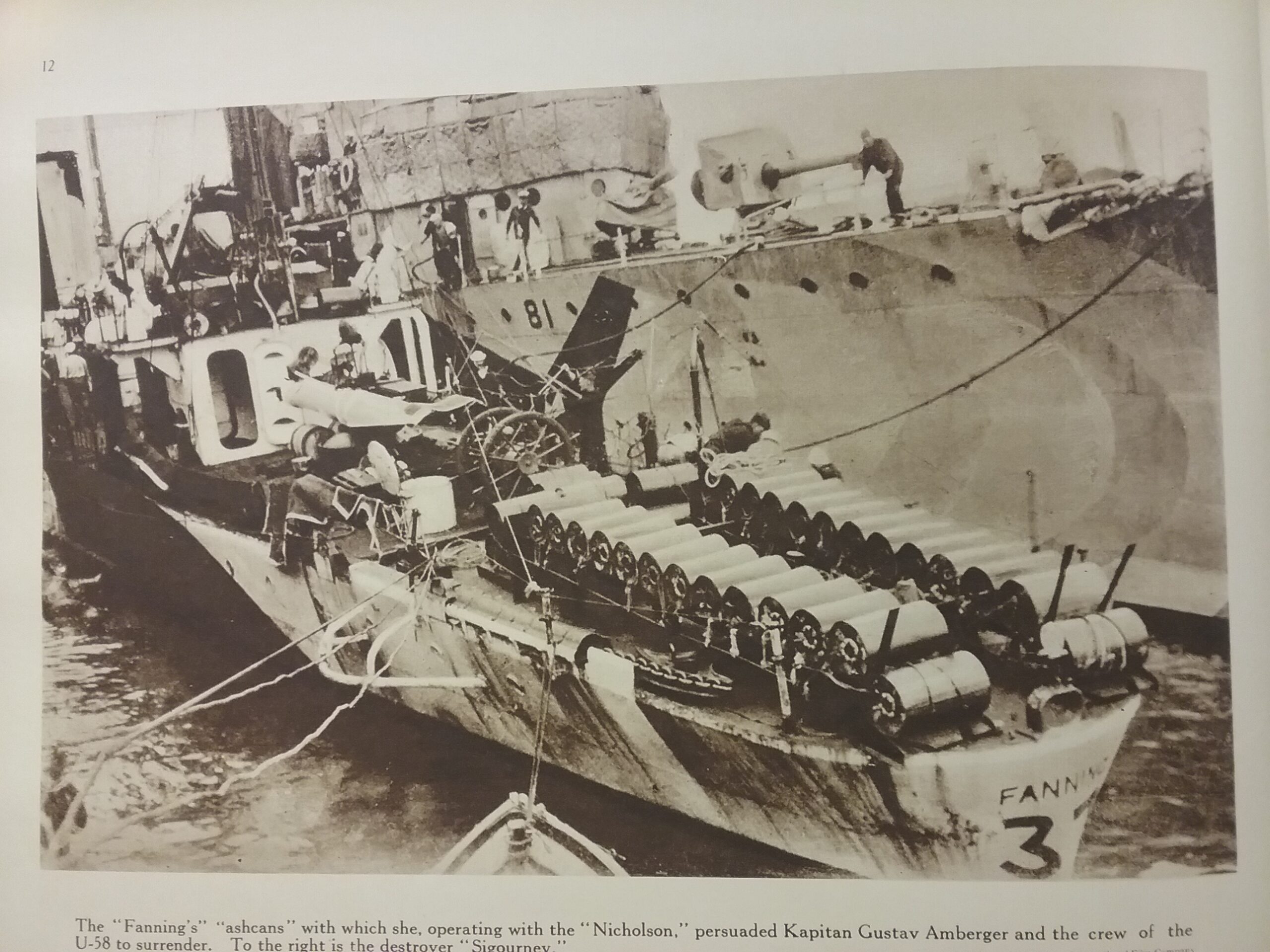 Op de USS Fanning zag men plots de boeg van de duikboot in een scherpe hoek uit het wateroppervlak duiken. Bijna onmiddellijk ging het luik van de toren open en begonnen de crew en officieren de duikboot te evacueren. Hierbij viel één persoon overboord die niet gered kon worden. Er werden zelfs bemanningsleden van de U58 gered door crew van de USS Fanning die overboord sprongen om hen te helpen. Allen werden aan boord gebracht van de USS Fanning waar ze onder bewaking werden gesteld. De USS Fanning werd zo het eerste Amerikaanse oorlogschip dat een Duitse duikboot tot zinken bracht.
