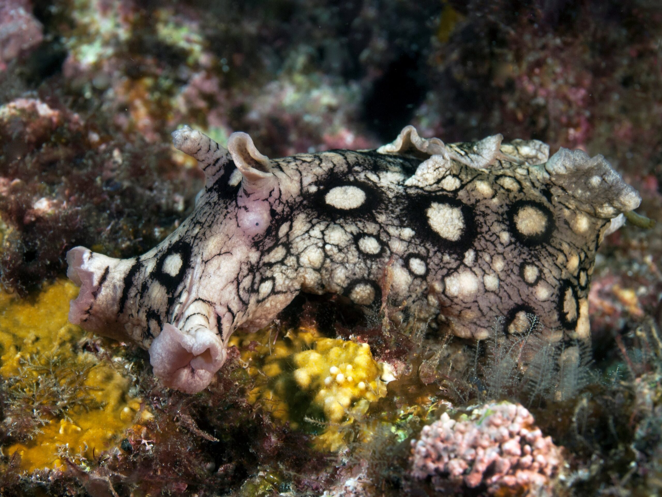 Buiten de baai ligt een heel groot wrak, de São Macario is 80 meter lang en ligt op 15 meter diepte. Het hele wrak is prachtig begroeid met aardbei koraal en vol met vissen. De egelvissen bij het wrak zijn erg groot en goed benaderbaar, het was alsof ze nog nooit een duiker hadden gezien. De eeuwige trompetvissen zijn niet weg te slaan, twee nieuwe soorten hengelaarsvissen zijn een goede vondst van de gidsen. Ik zie die beesten zelf niet, ze zijn zeer goed gecamoufleerd. Naaktslakken, de geel gestippelde murenes en de zeehaas, het is een vreemde mix van koud en tropisch water. De laatste dag mocht ik zeggen waar we heen gingen en omdat er weinig wind was koos ik het wrak. Is altijd al fascinerend, zo’n gezonken schip, maar nog mooier is om te zien hoe de natuur het in beslag neemt. En de grote boot wordt gevuld met scholen vis, erg mooi!