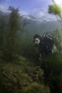 Een van de verrassingen in het Haringvliet voor veel duikers is de hoeveelheid waterplanten die je tegen kan komen. En in planten zit vaak ook (klein) leven. Een manier om een leuke duik te hebben is dus door vooral tussen de wieren en planten te zoeken naar klein grut. Waterplanten die je veel kan vinden zijn: vallisneria, rivierfonteinkruid, smalle waterpest, schede -en tenger fonteinkruid, aarvederkruid en draadwier.