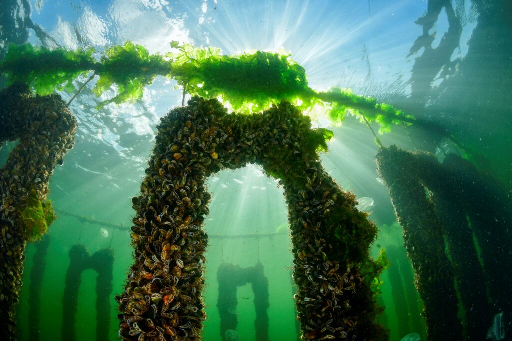 Groothoekfotografie is mijn favoriete discipline en ik had het geluk dat het zicht veel beter was dan tijdens de oefenduiken en ook brak de zon door. Door ondiep te blijven wilde ik het gevoel van schaal van het ecosysteem van de mosselcultuur laten zien en ook een mooie zonnestraal vastleggen. Daarom ‘verstopte’ ik de zon achter het groene zeewier dat aan het touw groeide, om de zonnestralen te kunnen controleren, aangezien beeldbewerking in de Masters-categorie niet is toegestaan. Ik ben erg blij met het beeld en met het geluk dat ik had op de wedstrijddag, en natuurlijk ook dat het werd bekroond met een gouden medaille.