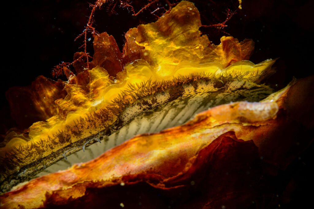 Macro is niet mijn sterkste discipline, dus ik ben blij met een plek in de top 10. De ochtend van de wedstrijddag was bewolkt, dus ik besloot eerst macro te proberen en ’s middags groothoek te doen, omdat er zon werd voorspeld. Ik ging naar Den Osse en dook langs de dijk op zoek naar mooie onderwerpen, zonder echt een duidelijk plan. Toen zag ik een prachtige oranje oesterschelp die iets openstond, waardoor je de delicate binnenmantel kon zien. Met een snoot heb ik deze belicht zodat hij oranje oplichtte; er is geen oranjefilter gebruikt – dit was echt de natuurlijke kleur, wederom met een beetje geluk.