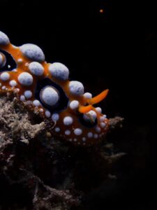 Nudi’s zijn samen met de karetschildpadden, keizervissen en sommige zeestersoorten een van de weinige dieren die op sponzen jagen. Hoewel sponzen niet kunnen bewegen en er redelijk weerloos uitzien zijn ze toch geen makkelijke prooi. Sponzen zitten namelijk bomvol giftige en afwerende stoffen die simpelweg gevaarlijk of onsmakelijk zijn voor andere dieren. Vele jaren evolutie heeft er tot geleid dat zeenaaktslakken deze sponzen toch kunnen eten. Ze zijn zelfs in staat om de giftige stoffen op te slaan en te gebruiken voor hun eigen verdediging. Hoe vet is dat!