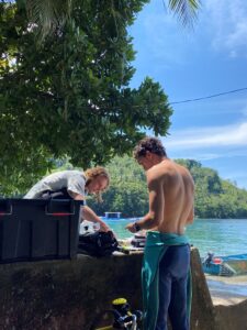 Na de grondige voorbereidingen in Leiden vertrokken Jason en ik met een gezonde dosis enthousiasme naar Indonesië. We maakten daar meteen kennis met de lokale onderzoekers die ons de aankomende maand zouden gidsen tijdens de duiken en kregen een rondleiding door het laboratorium, dat net iets minder uitgebreid uitgerust was dan we in Leiden gewend waren. Nu waren we dan écht klaar om de volgende dag met het onderzoek en het duiken te beginnen.
